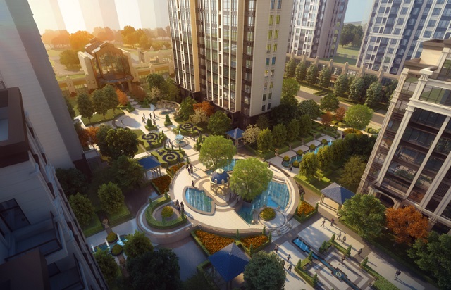 泰爾·書香頌項目在設計中,以中軸線呈現兩翼規整對仗,營造出縱深尺度宏大的莊嚴與氣勢,突出尊榮華貴的氛圍,利于減少戶型種類,減少施工難度,利于打造主次分明的景觀系統。