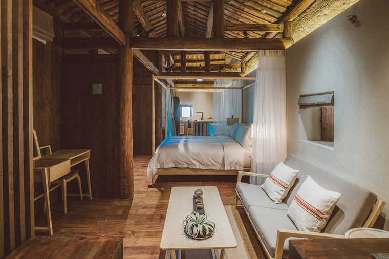 青普土樓文化行館位于福建漳州的文化遺產地,由5棟傳統的土樓建筑組成,擁有十分悠久的歷史,其中3棟是在晚清時期建成。設計團隊將土樓古老的、以夯土墻和木結構為主的風格保留下來,維持了建筑的原始樣貌,同時在空間中置入了富有當地特色的藝術裝飾,強調出青普特有的文化內涵。行館共包含22間雙臥室套房,在內部,綠色的板巖與溫暖的實木和冷杉木形成搭配,古典樣式的柱梁與現代空間結合在一起,凸顯出傳統工藝的美感。由梵幾(FNJI)設計的室內家具將這種傳統工藝與現代的設計語言結合起來,更好地適應了當代中國人的生活方式。